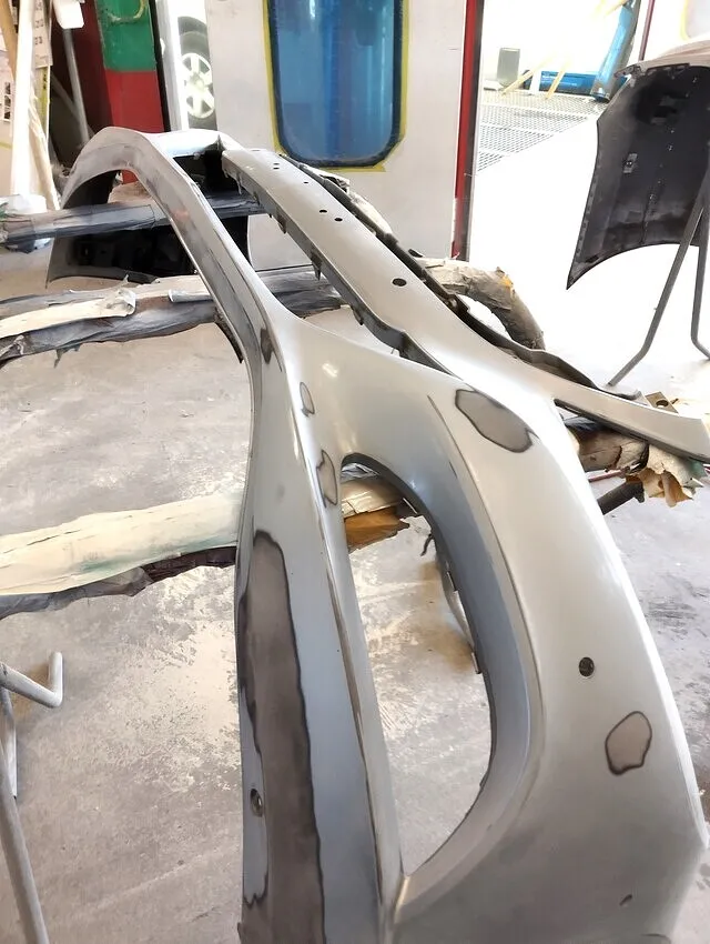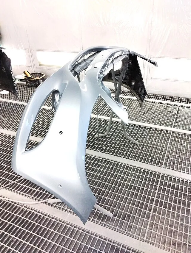 横浜市都筑区でベンツSクラスのフロントバンパー修理なら当店にお任せください。まず損傷状況を丁寧に確認後、バンパーを慎重に取り外します。亀裂やへこみは『ホットステープラー』や『プラスチック溶接機』といった専用工具で樹脂溶接を行い、高い強度と美しい形状を復元します。また当店ではお客様への感謝として、バンパー1本の修理依頼につき、サービスとして小さな傷や軽度の損傷などをもう1箇所無料で修復いたします。パテやサフェーサー工程を経て、塗装面の美しい仕上がりを追求。細部に至るまで完璧な仕上げを職人が手掛け、新品と変わらない美観と耐久性を提供します。横浜市都筑区でベンツをはじめ高級車や輸入車の板金修理・バンパー修理は安心・信頼の当店へお越しください。