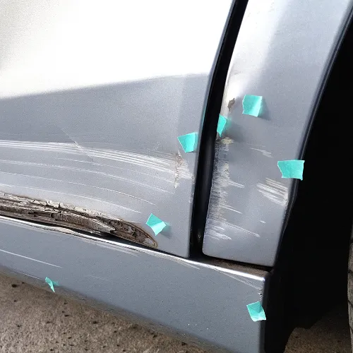 通常なら交換?フィット・左リヤドア・左サイドステップ板金塗装【板金塗装修理事例】きずへこみ