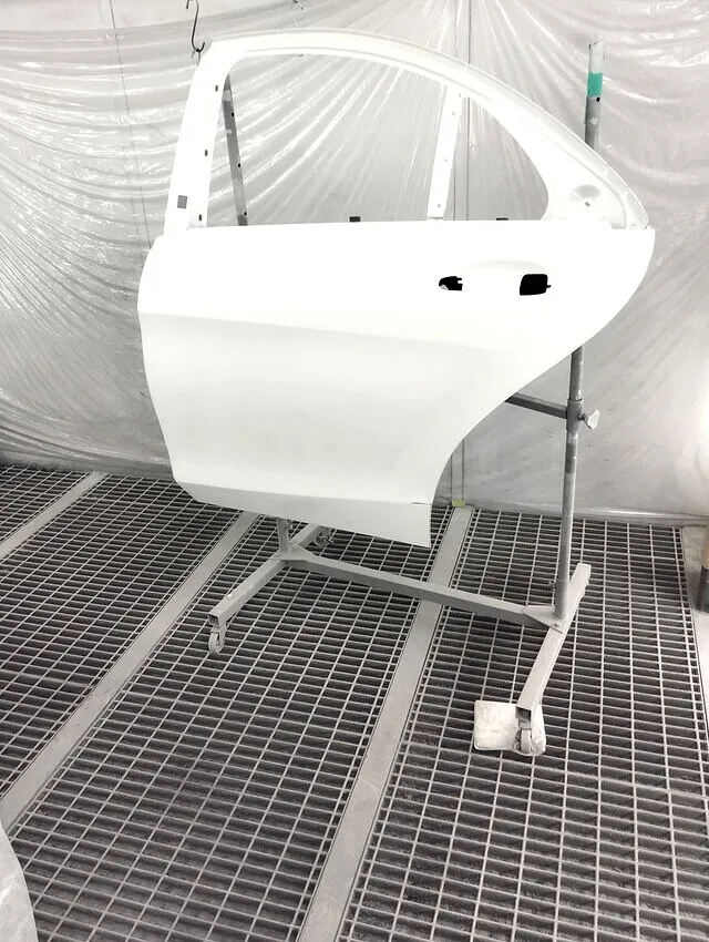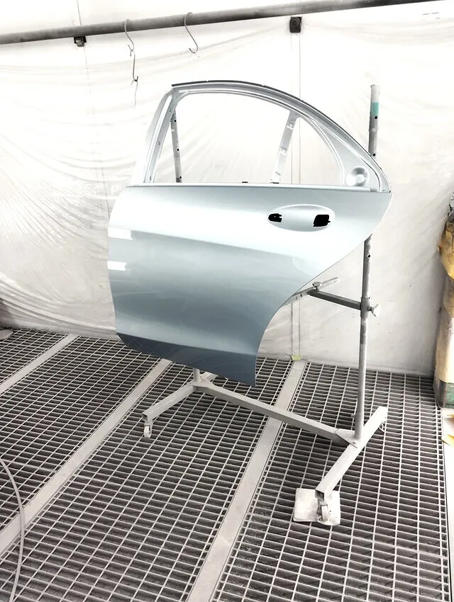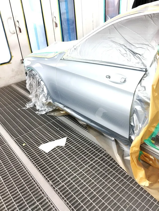当店では、ベンツSクラスの左リヤドア修理にリサイクル部品を使用し、新品同様の仕上がりを実現しています。リサイクルパーツを使用することで、部品コストを大幅に抑えつつ、手抜き一切なしの確かな技術で品質を追求します。塗装工程では、まず丁寧なサフェーサー処理を施し、下地を完全に整えます。その後、色合わせ(調色)を慎重に行い、専用の塗装ブースでホコリやゴミの侵入を防ぎながら、ムラなく均一に仕上げます。さらに、クリア塗装により光沢感を生み出し、磨き工程(バフ仕上げ)で輝きを引き出し、新品部品に劣らない美しい仕上がりを実現します。当店は手抜きのない丁寧な作業を徹底し、お客様にご満足いただける仕上がりをお約束します。横浜市都筑区で輸入車や高級車の塗装修理は、安心・信頼・高品質の当店にお任せください。