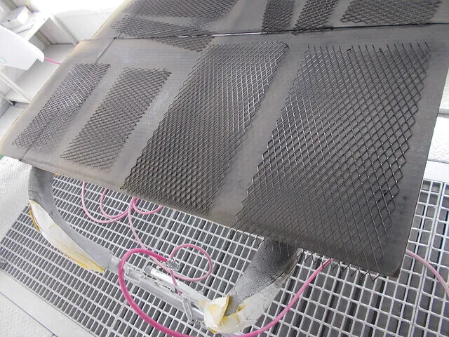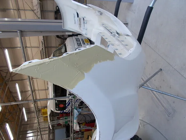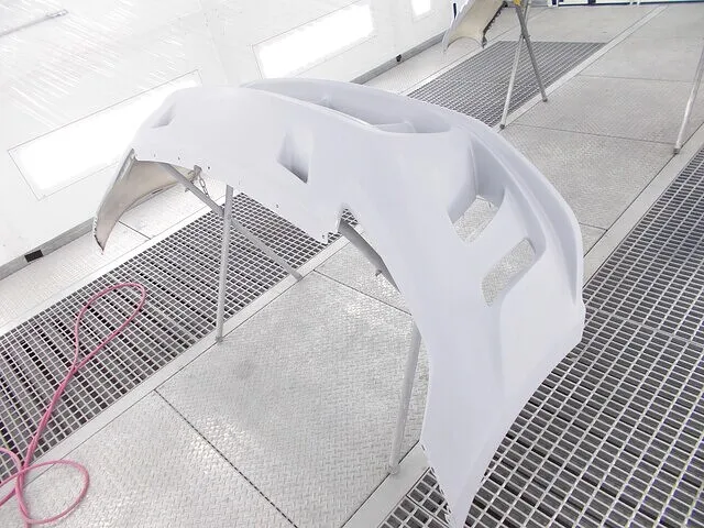 FRPパーツを3コートパールで仕上げる際には、まず下地処理に徹底的に神経を使うことが肝心です。特にFRPは、表面に微細な凹凸やピンホール(巣穴)が生じやすく、そのまま塗装に入るとパールの膜厚や光の反射にムラが出やすくなります。そこで、**「見えない箇所ほど丁寧に」**を合言葉に、パテの盛りやサフェーサーの厚みを細かく調整しながら研磨を繰り返し、滑らかな下地に仕上げるのです。