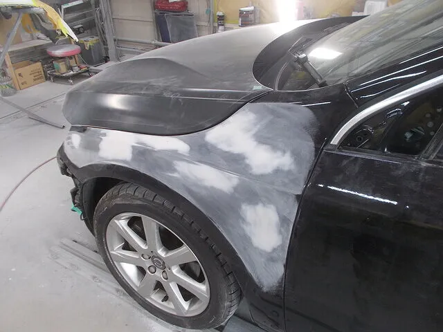 こうした下地づくりの“ひと手間”は、一見地味に思えるかもしれませんが、後の塗装工程で艶やかな光沢やスムーズなラインを生み出すための最重要ポイント。もしこの工程を適当に済ませれば、どんなに上質な塗料を使っても、小さな凹凸や波が光によって強調され、結果的に「修理跡が残ってる……」と気づかれてしまいます。私たちは長年の経験を活かし、塗装前の時点ですでに“ほとんど傷があったとは思えない”という状態へと近づけるのです。
