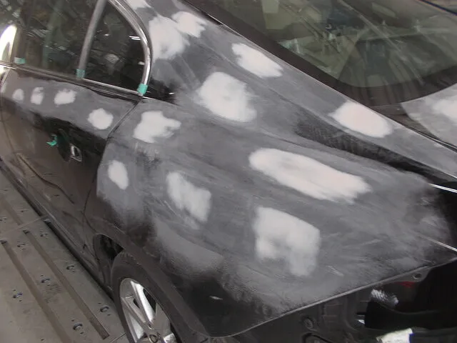 一度に厚塗りパテをバンと盛り付ければ、短期的には効率的かもしれません。しかし、それでは塗装面が後々ひび割れたり、収縮によって不自然な波が出たりするリスクが高まるのです。そこで、必要最小限のパテを何回かに分けて重ね、繰り返し削り込み、ほんのわずかな差も見逃さないよう仕上げていきます。完成直後だけでなく、1年後・2年後も“きれいに保てる”ようにという発想が、このアプローチの根底にあります。