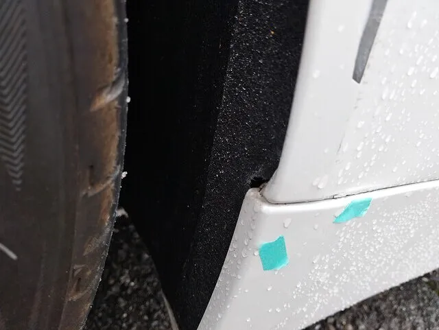 「横浜市都筑区|インプレッサスポーツ(GT3)フロントフェンダーの大きな凹みを板金修理」