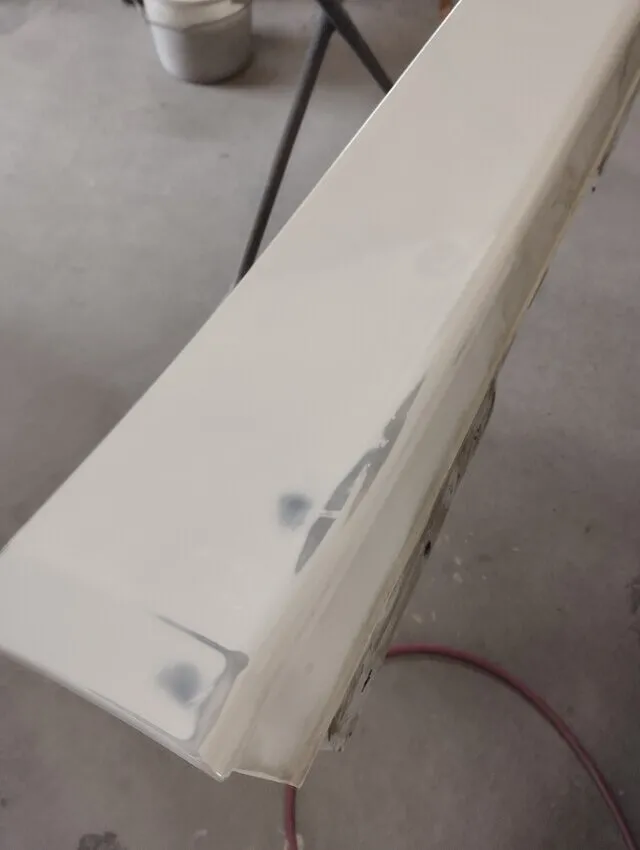 サイドシルガーニッシュも、少しのズレが全体のシルエットを崩しかねないパーツ。傷や変形があれば、ガーニッシュの裏側や取り付け部を含め、微妙な段差を合わせ込むように下地を仕上げていきます。塗装前のサフェーサー工程では、光の当たり方を変えて何度も確認し、パテ面に残るわずかなギャップや気泡を逃しません。一度仕上がってしまえば、見えなくなる箇所でも手を抜かない。そんな“職人のこだわり”が、塗り上がったあとに隅々まで美しい外観をつくり上げるカギとなるのです。