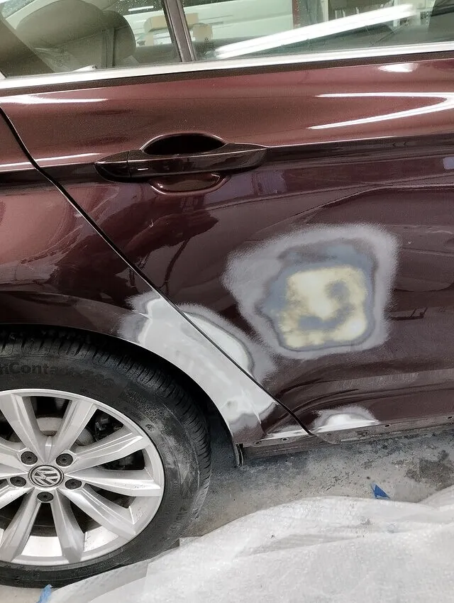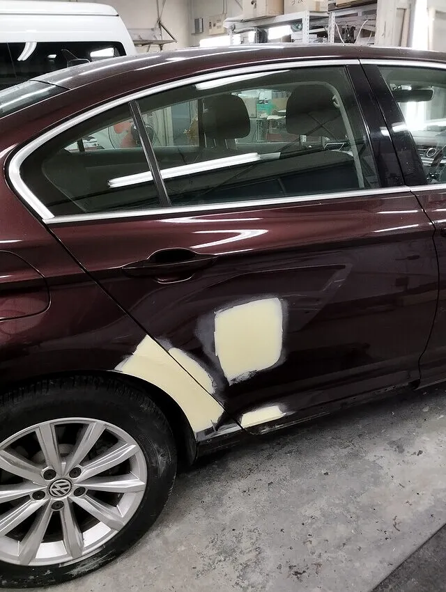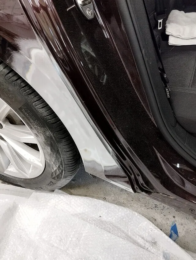 横浜市|VWパサート 板金塗装修理事例|右リアドア・クオーターを再生し保険等級も維持