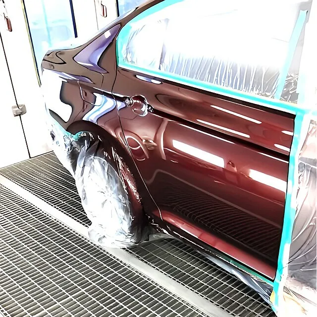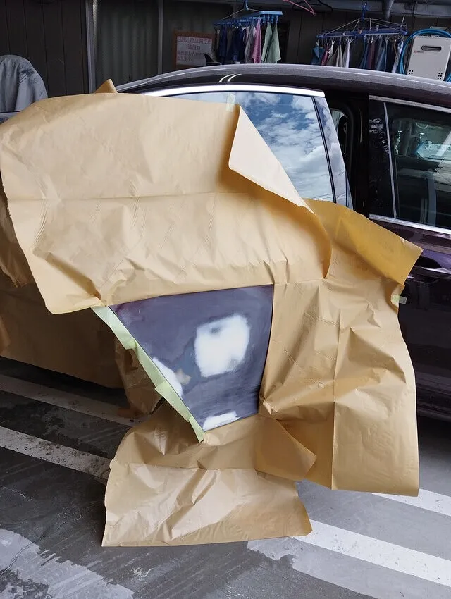 マスキング範囲を最小にしながら、ドアエッジやプレスラインの連続性も意識して、違和感ゼロの面作りへ。