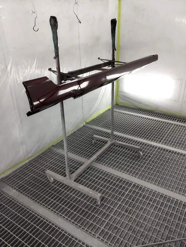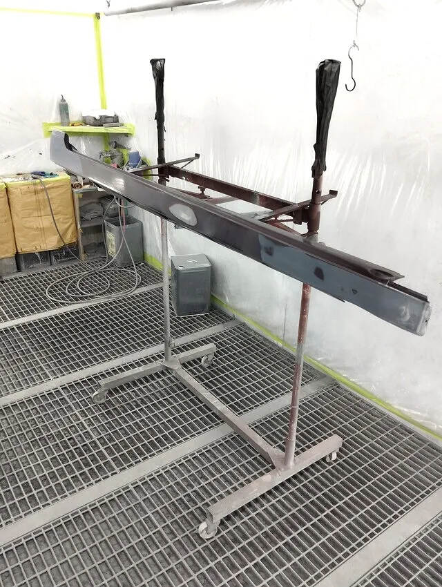 全体を足付け・平滑化したあと、ブースに吊るし浮き・剥がれの出ない塗装密着面へ処理完了。