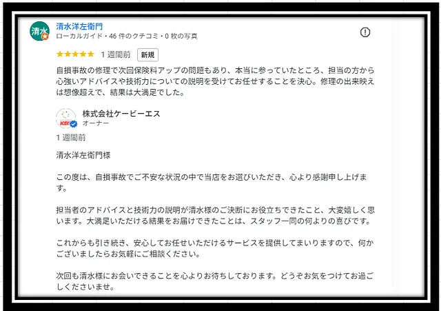 ◎お客様からは「丁寧な説明と技術力に安心して任せられた」と高評価のレビューをいただきました。