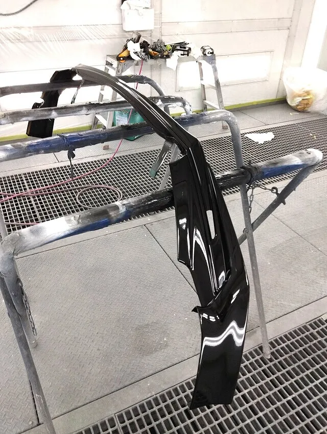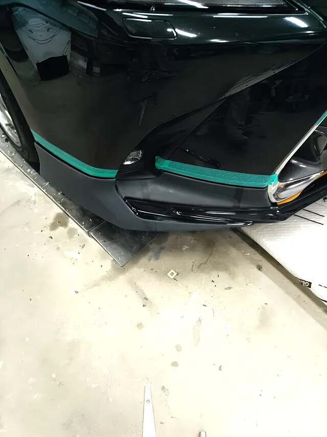 塗装前の下処理として、エアロを一旦取り外し、取り付け痕の段差・接着跡・キズ・裏面固定部まで細かく確認中。