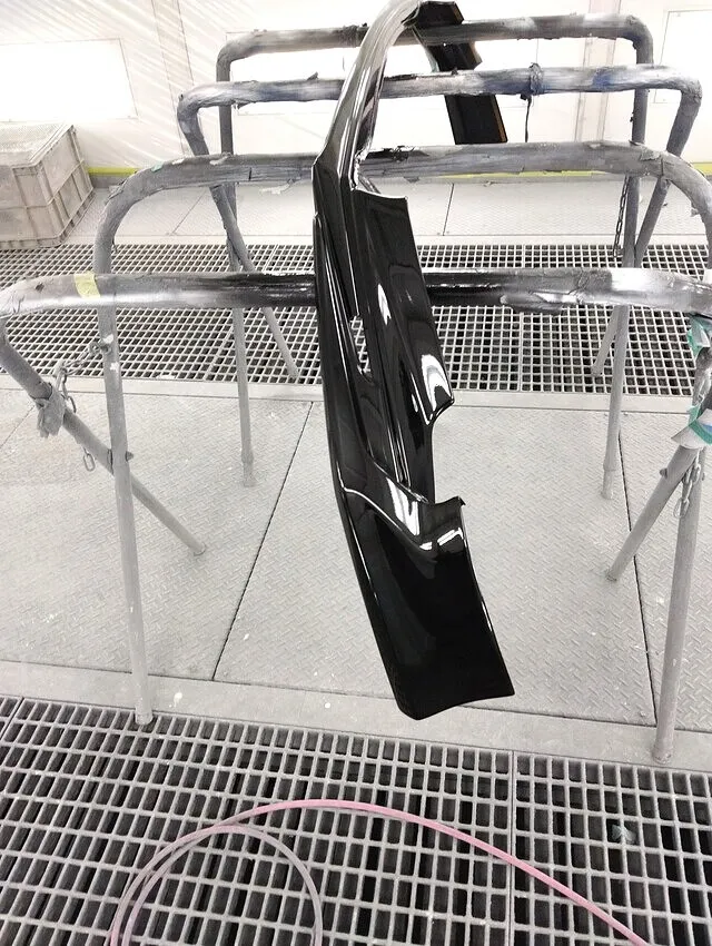 ● パーツ自体は細長く曲面が多い形状ですが、KBSでは塗膜の厚み・粒子の流れ・光の反射を均一に保つスプレーパターンを設計し、ムラのない一発仕上げを実施。