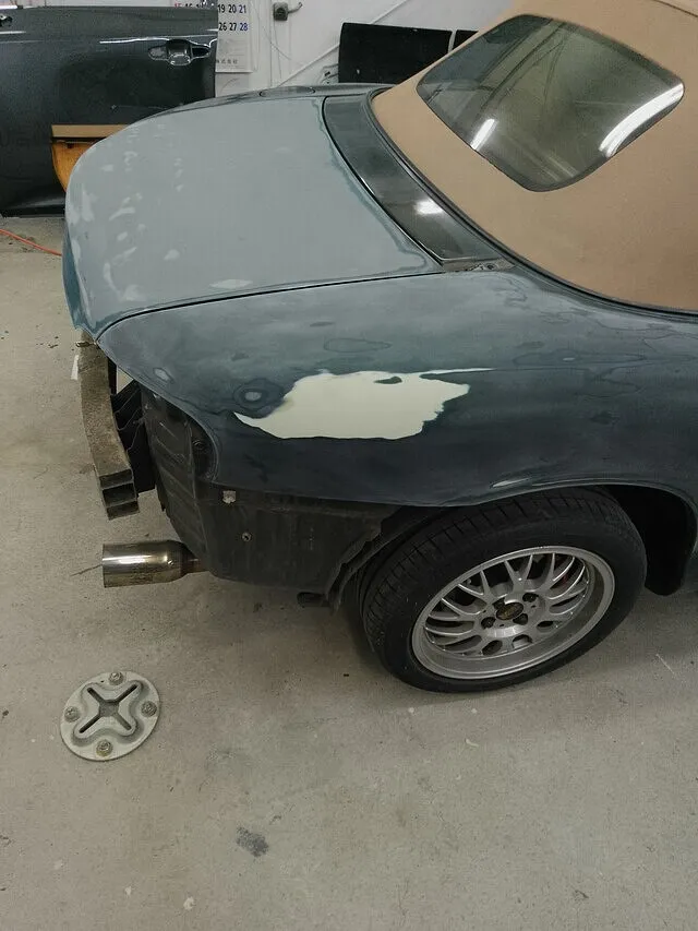 「マスタング右リヤフェンダーの大破損も修理可能|横浜市都筑区で通常交換部位を板金で再生」