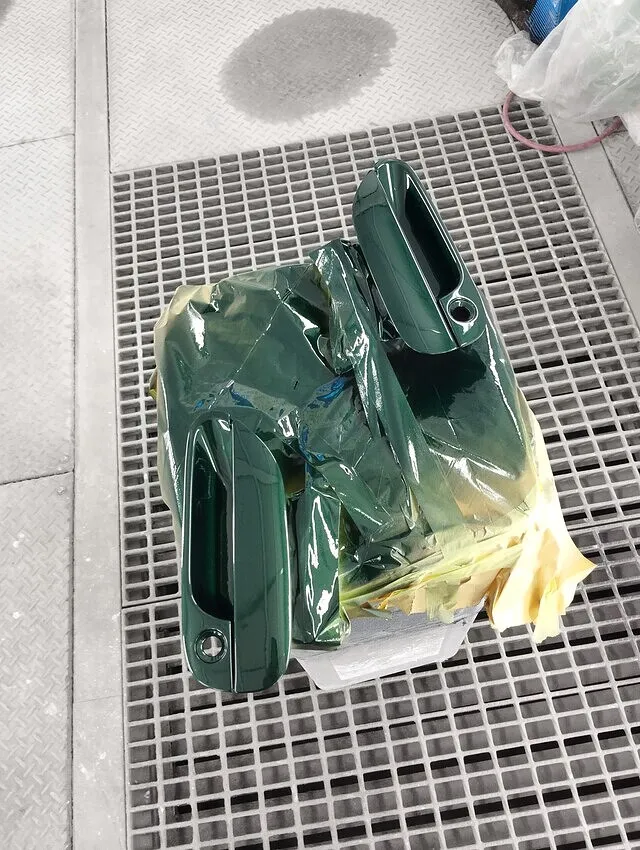 このブロックは、ワイパーブレード/ドアミラー/アウターハンドルなど、車体から取り外したパーツたちの塗装シーン。