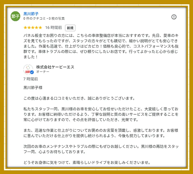 大切なお車のキズ修理というご不安の中、KBSを選んでいただけたこと、
