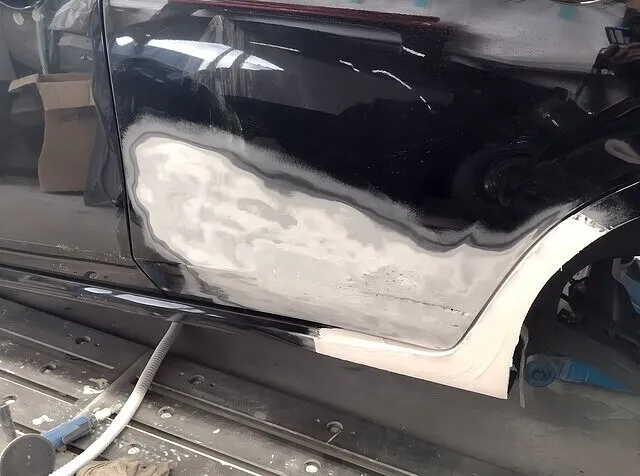 板金で鉄板の歪みを整えたあとは、“艶の土台”となる下地作り。