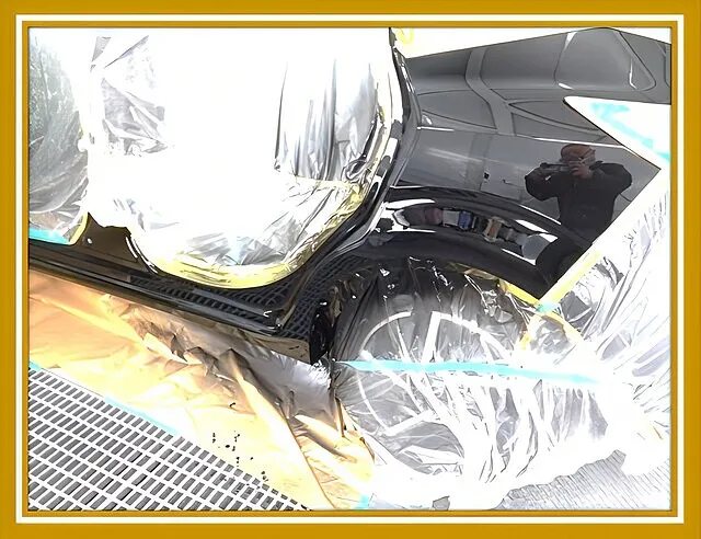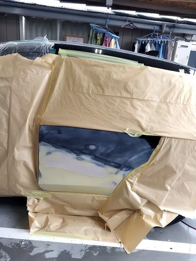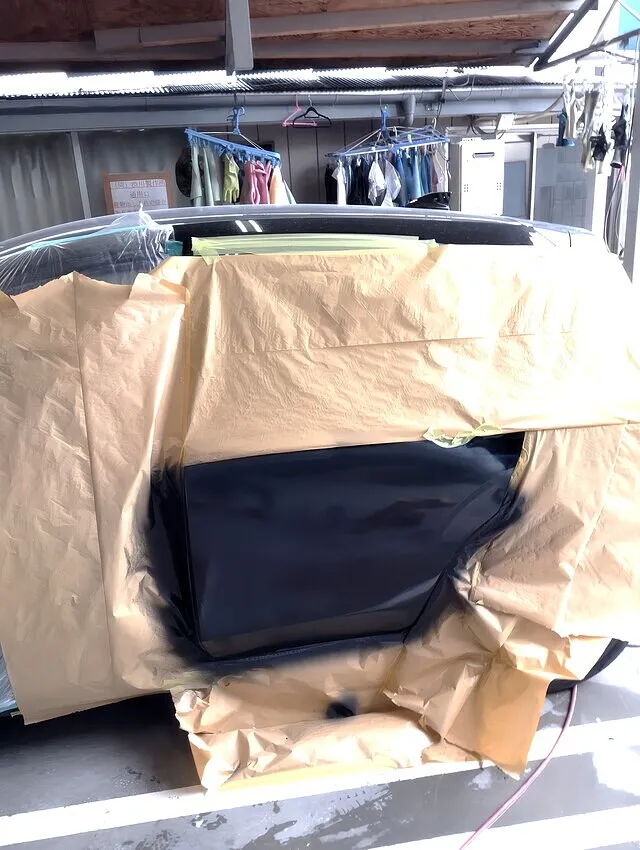リアクォーターパネル+アウターシル一体塗装のシーン。