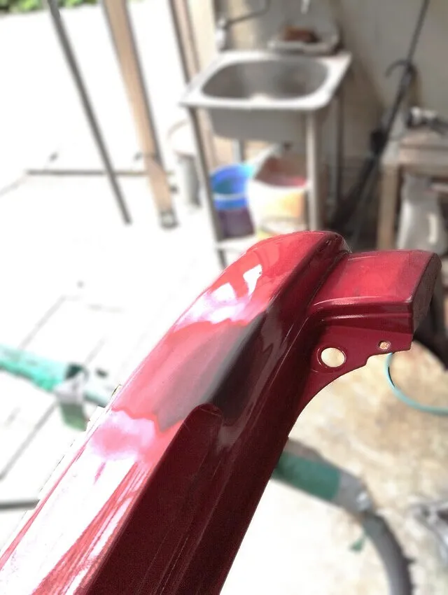 今回のバンパーは、年式も古く、部品供給が難しい状態でした。