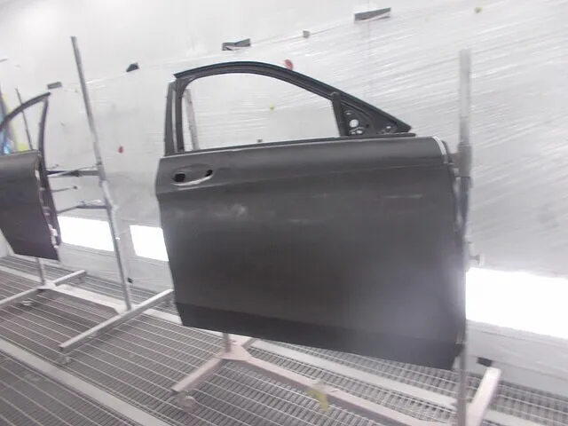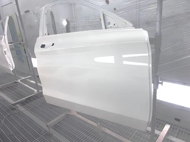 センターピラーの交換後は、単純に新品部品を白く塗るだけでは違和感が残ってしまいます。そこでKBSでは、隣接パネルまでを含めた“ぼかし塗装”を実施。光の通り方や艶の深さを均一に仕上げることで、交換箇所がまったく分からない自然な仕上がりを実現しています。