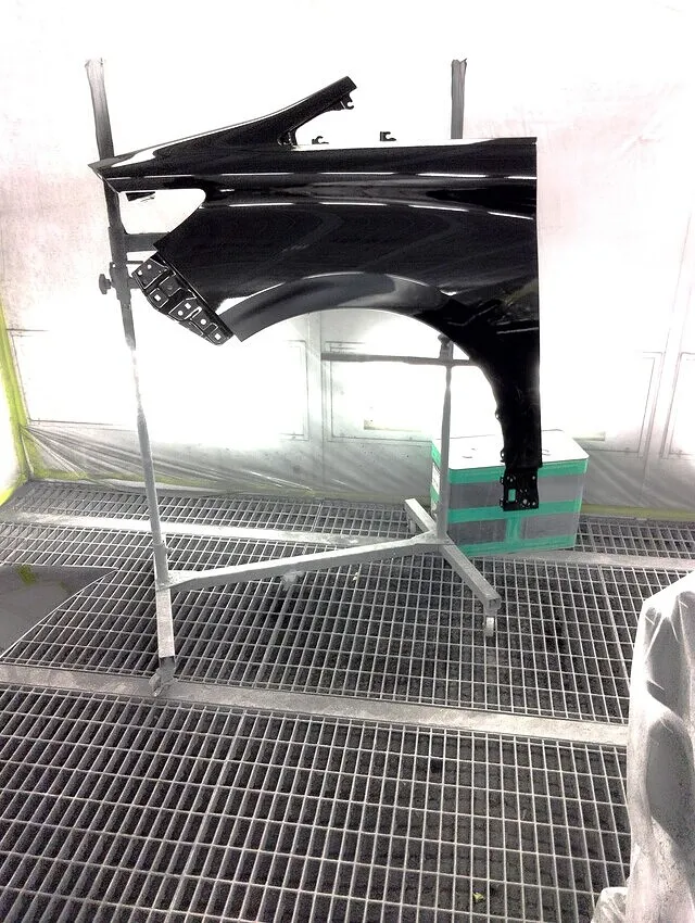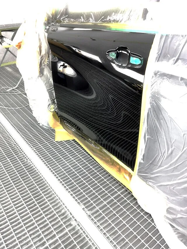 KBSでは、専用塗装ブースと高機能クリアーを用い、蛍光灯の光まで均一に反射させる精密な塗装を実現。