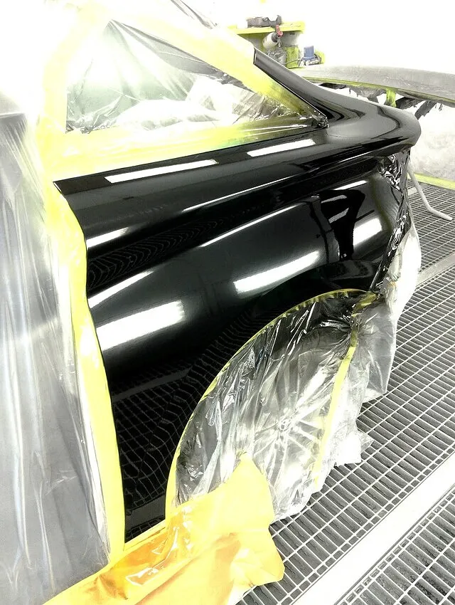 KBSでは、高機能耐スリ傷クリアーを2コートで施工。光沢と深みのある黒を実現しつつ、日常使用での細かい擦り傷にも強い塗膜を形成します。さらに、最新のサイマー式塗装ブースを使用することで、ホコリの付着を最小限に抑え、塗装後の磨きを極力少なくしても“鏡のような艶”を再現。