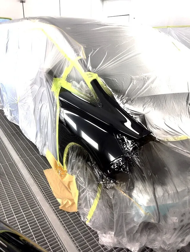 写真は、トヨタ202(ソリッドブラック)専用クリアーでの塗装工程です。