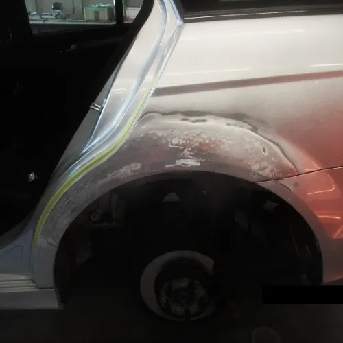 ベンツ 左リアドア・フェンダー 大きな凹み ベンツ C180 204 【板金塗装事例】 横浜市都筑区