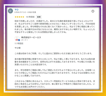 交換に頼らず、必要な工程だけを丁寧に積み重ねた結果、仕上がりの完成度で★5評価をいただきました。