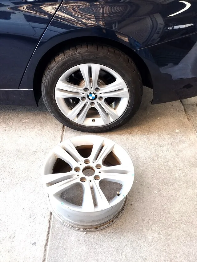 ● 今回のBMW 3シリーズツーリング(F31)では、左リヤのホイールにガリ傷・変形・塗装剥がれが確認され、