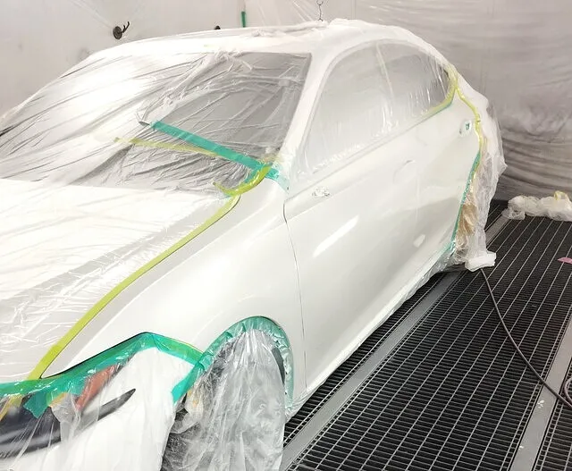 レクサスESの070ホワイトパールは、3層で深みと輝きを出す高難度塗装。