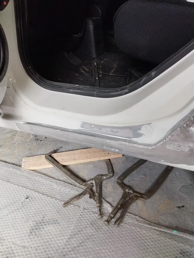 通常なら交換?フィット・左リヤドア・左サイドステップ板金塗装【板金塗装修理事例】きずへこみ