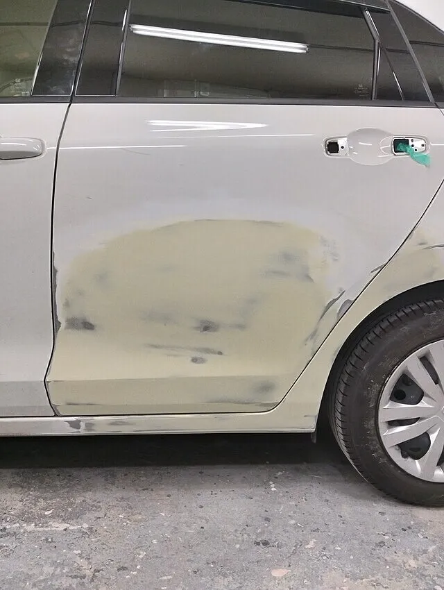 ここでは、面の流れ・プレスライン・光の反射具合を整える最も重要な下地作業となります。