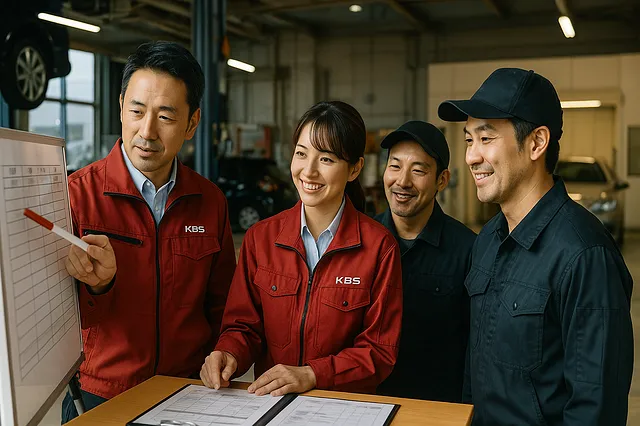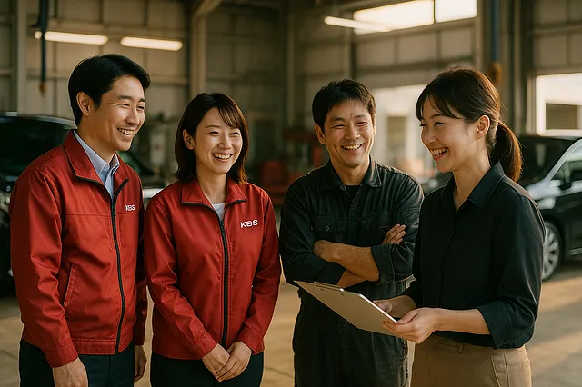 整備士・塗装職人・受付スタッフがそれぞれの持ち場で力を発揮し、