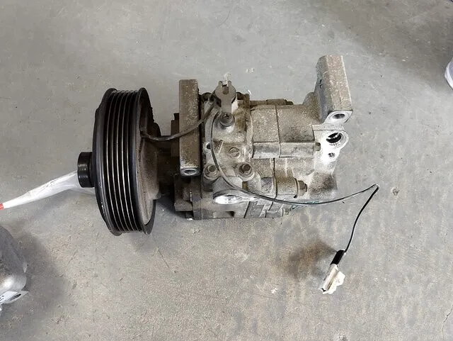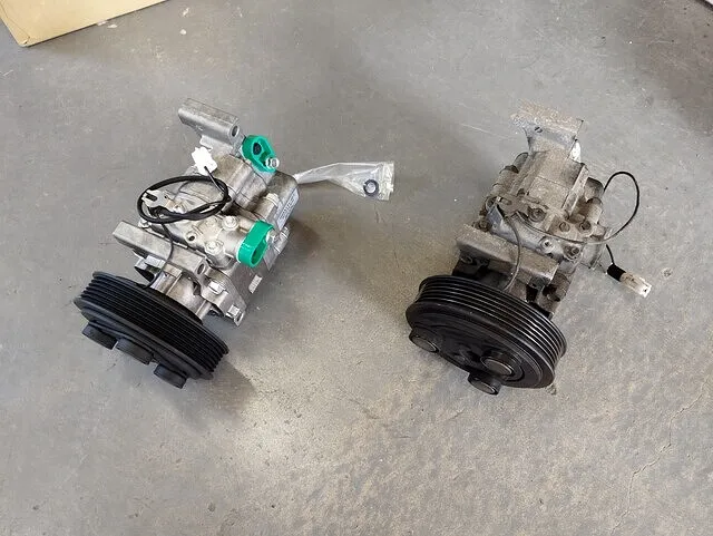 古いコンプレッサーはクラッチの焼き付きや内部劣化が見られ、冷却性能が著しく低下している状態でした。