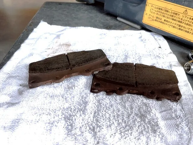 フロント4.0mm/リア5.5mmのしっかりした残量を確認できたため、今回は交換せず、そのまま再使用OK!