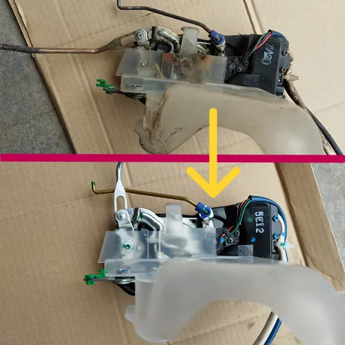 今回は左フロントドアロックASSYと、右リアドアロックアクチュエーターを分解・交換。