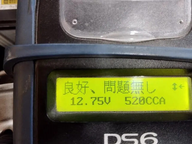 さらに、バッテリーテスターにて電圧(12.75V)を測定し、良好な状態を確認。