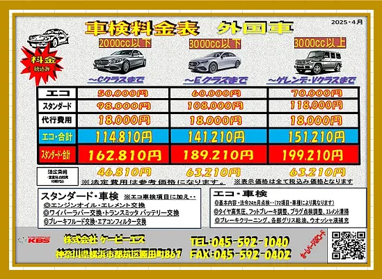 国産車:48,000円〜/輸入車:98,000円〜KBSでは、「今必要な整備」と「次回に回せる整備」をしっかり見極め、ムダな出費を防ぐ的確なご提案をしています。