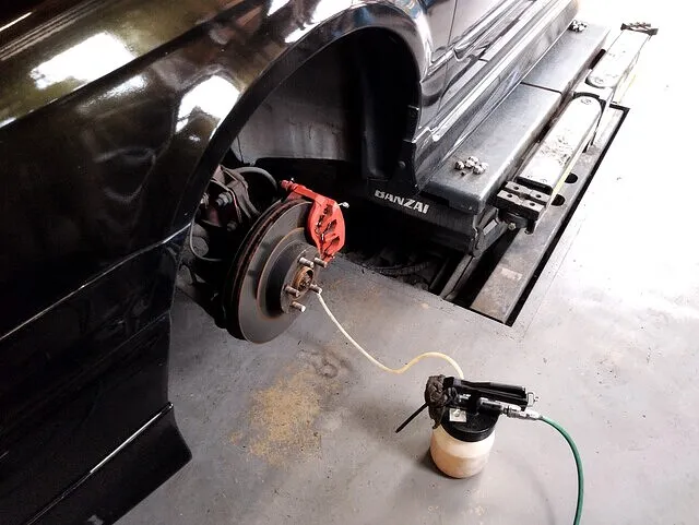 今回の車検では、ブレーキフルードは汚れ・劣化が少なかったため交換せず、エア抜きのみを丁寧に実施。