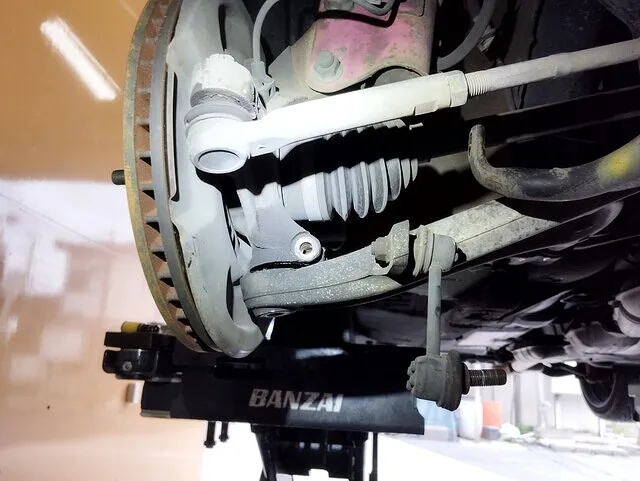 今回は、左右のフロントロアボールジョイントのダストブーツが破れている状態を確認し、即座に交換対応を行いました。