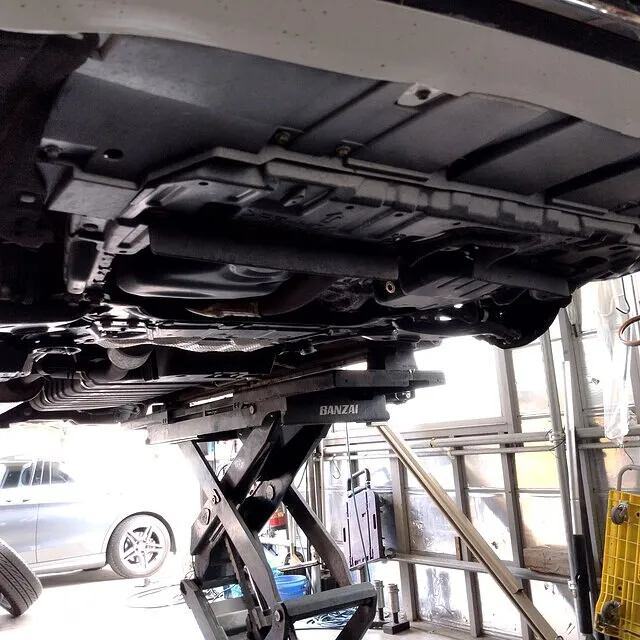 そんな不安を持つ方も多い中、KBSではプロ用のリフトで車体をしっかり上げ、足回りや床下の状態をダイナミックにチェック。
