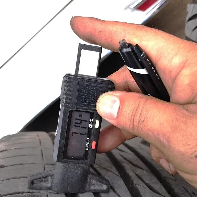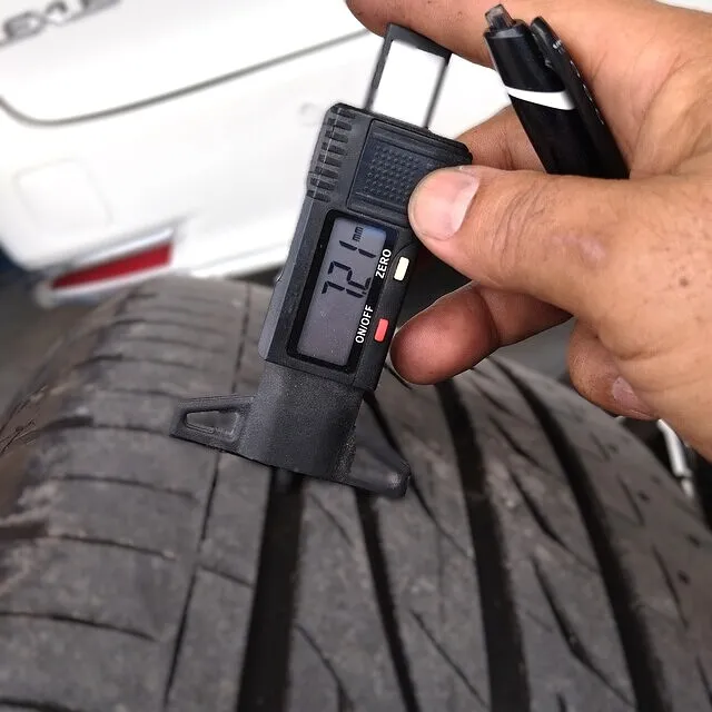 KBSの車検整備では、タイヤの残溝をミリ単位で正確に測定し、状態を写真とともにご報告。
