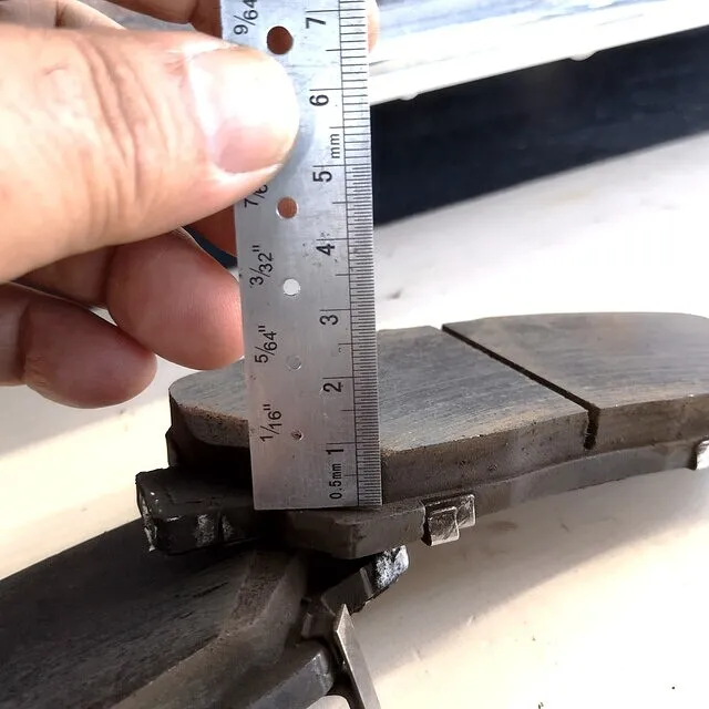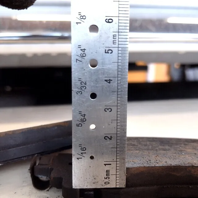 今回は、フロント・リアともにブレーキパッドを取り外し、定規で残量を計測してご報告。