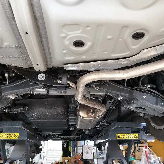 KBSでは、車検時の24ヶ月法定点検でリフトアップを実施し、普段は見えない下回りまでしっかり確認しています。