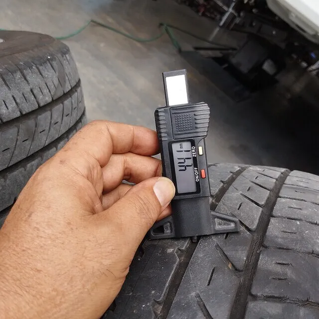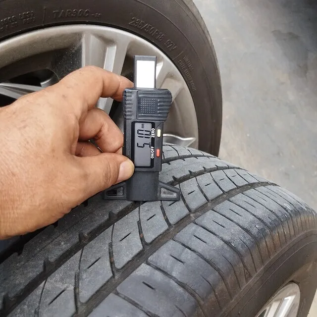 今回の車検整備では、タイヤの残量を専用ゲージで正確に測定。